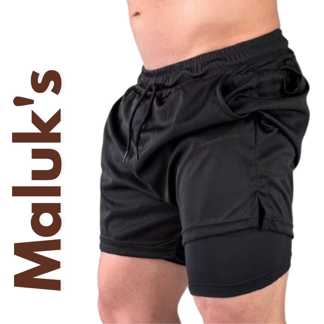 BERMUDA MALUK'S MASCULINA 2 EM 1 COM SHORT DE COMPRESSÃO PARA ACADEMIA